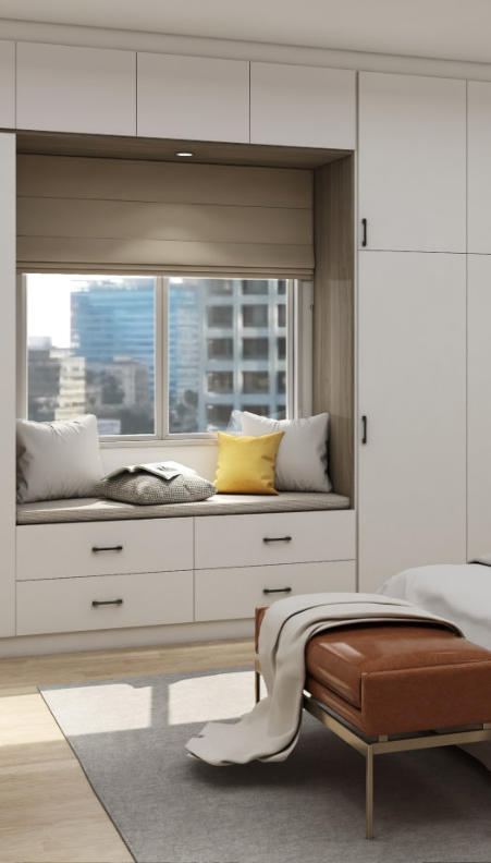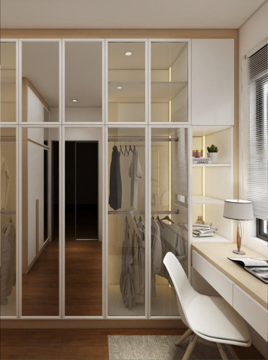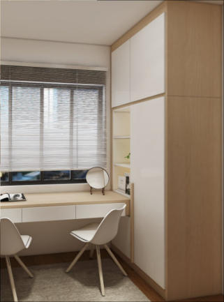 A swing door wardrobe provides more storage space